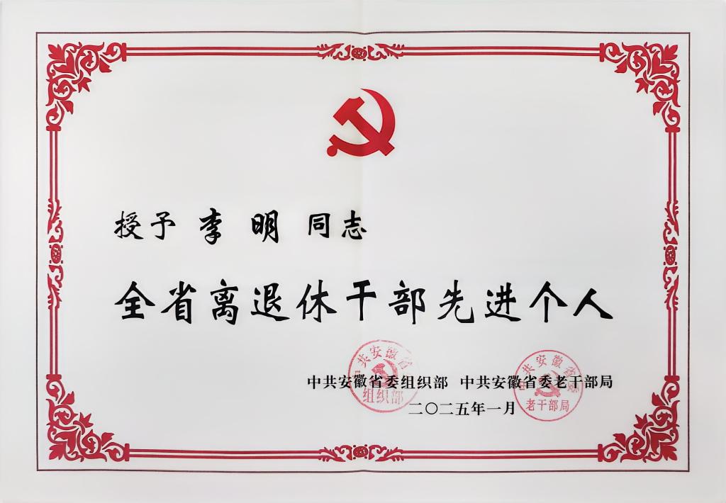 根据中共安徽省委组织部、中共安徽省委老干部局《关于表彰全省离退休干部先进集体和先进个人的决定》,我校原纪委书记、校关工委原常务副主任李明同志被授予“全省离退休干部先进个人”荣誉称号。