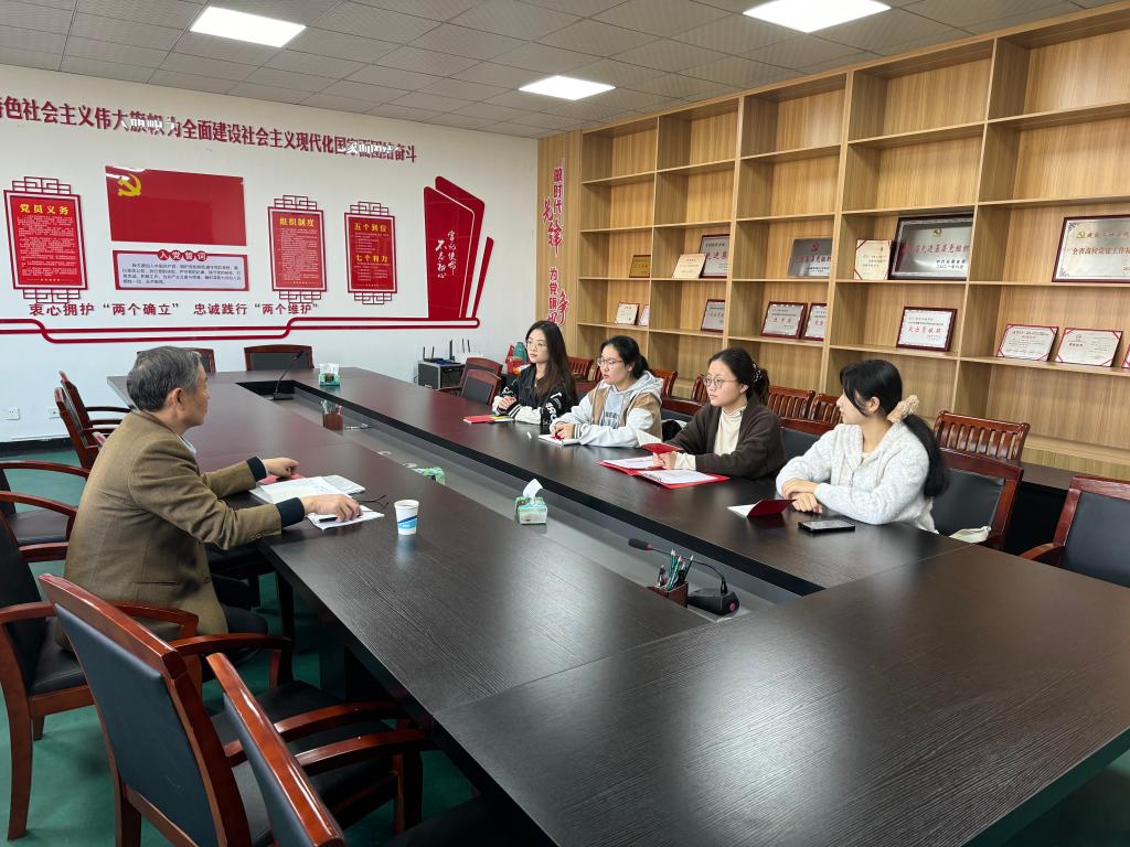 10月23日上午,学校关工委特邀组织员蔡保兴老师到建工学院与四位学生入党培养对象开展谈话交流活动。