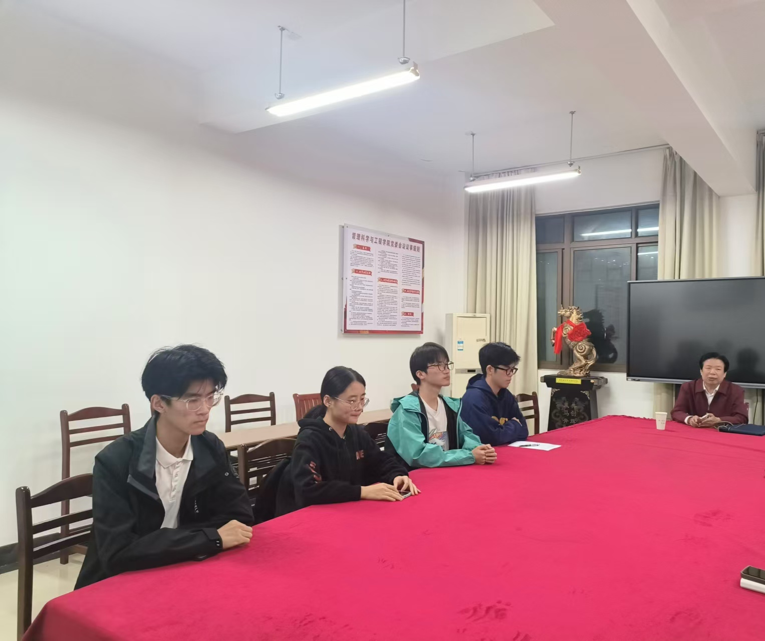 11月15日晚上,校关工委特邀组织员赵保平老师在秀山校区教学楼A楼302会议室与管工学院和微数学院8名大学生入党积极分子和培养对象进行第二次谈话。