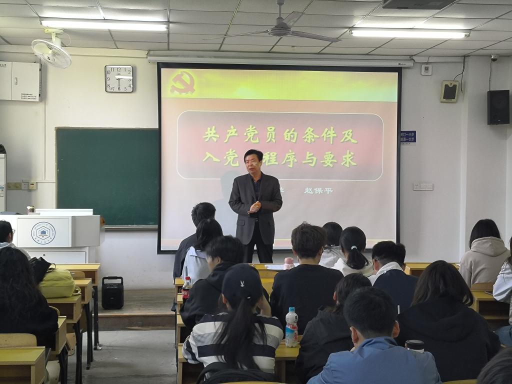 为了提升入党积极分子的政治素养和思想认识,加深对党的理论体系、奋斗历程和根本宗旨的理解认知,4月14日下午,外国语学院分党校在教一419教室开展第四十九期入党积极分子党课培训。本次培训特别邀请我校原党委常委、党委组织部部长赵保平,校关工委副主任胡源申主讲,外国语学院、马克思主义学院以及工程研究院入党积极分子参加此次培训。