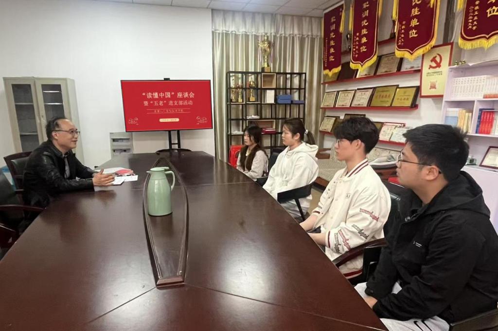5月26日,计算机科学与技术学院开展“读懂中国”“五老”进支部座谈活动。特邀学院荣休教师、关工委副主任单桂锋担任主讲,学生党支部党员代表参加活动。