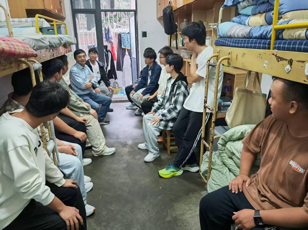 走访中,黄国才对新生的到来表示热烈欢迎,细致询问了新生家乡背景和军训感受,围绕日常学习、生活起居、理想规划等话题展开深入交流。黄国才结合自身教育经验与人生感悟,向同学们提出三点建议,一是要珍惜大学时光,勤奋学习,不断提升自我,为大学四年制定明确的目标规划;二是广泛阅读,拓展知识视野,促进全面发展;三是关注心理健康,保持积极乐观的心态,勇于面对挑战。同学们纷纷表示,此次交流让他们感受到学校的温暖与关怀,也更加坚定了努力学习的信心。
